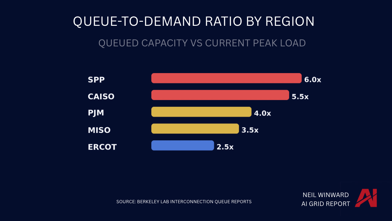 In several U.S. power markets, the volume of generation waiting in interconnection queues is multiple times larger than current peak demand. That doesn’t represent future capacity. It represents a filtering problem.