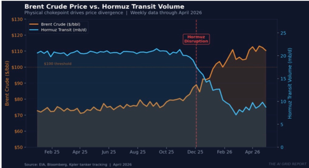 OIL SHOCK CHART - BRENT VS. HORMUZ